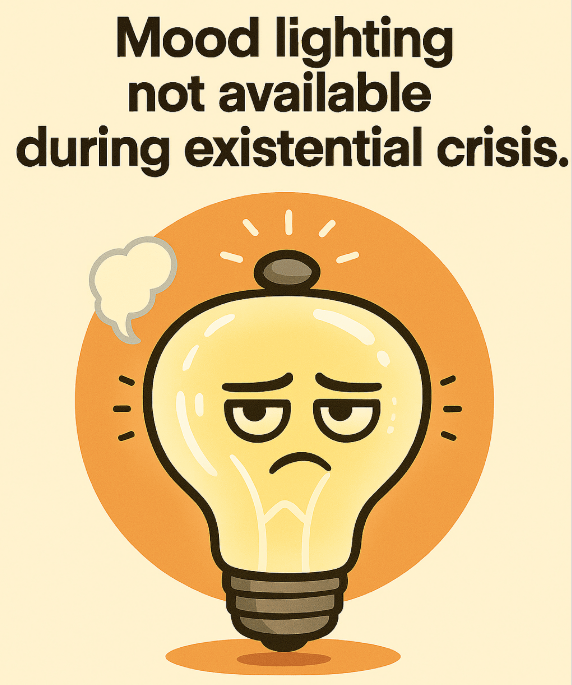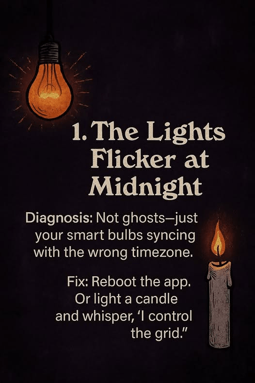 “That meme is hilarious. The idea that smart bulbs syncing with the wrong timezone could be the reason for spooky lights flickering is genius. And the fix is perfect – “Reboot the app. Or light a candle and whisper, ‘I control the grid.'” Love the sass. Do you think Ash’s Paranormal Tech Support is a real page?”