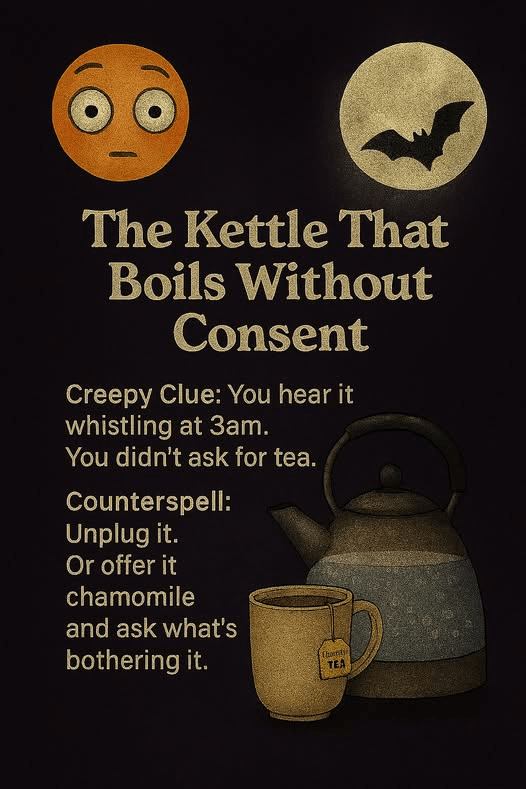 “That’s a creative spin on the meme. In this context, the “kettle that boils without consent” is likely a humorous metaphor rather than a literal curse. It’s poking fun at the idea that household appliances might develop a mind of their own and start operating without our permission. The meme’s tone suggests it’s meant to be lighthearted and relatable, rather than a serious commentary on supernatural phenomena. What do you think – do your appliances ever seem like they’re plotting against you?”