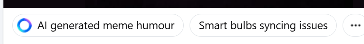 Now FB, as many of you may now know, has created Meta AI, and the newest feature are little comment boxes that FB will add under some pictures or links that you post on your timeline. Under this particular Meme, Meta posted 2 clickable boxes. I’ll get to the first one in a second, but the second one was [Smart bulbs syncing issues]. When you clicked on this, Meta gave advice on how to fix the problem.