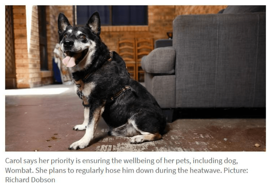 Around the middle of December, during an umpteenth heatwave, one particularly hot day hit, pushing over 40 degrees. Although I kept both my dogs inside with portable aircon on and fans in every room, the internal temps reached well into the 30s.