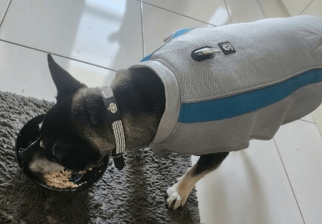 Thanks to my friend, he’s now on heart meds, an even stricter diet than I already had him on, and wears a cooling jacket every time he goes outside.
